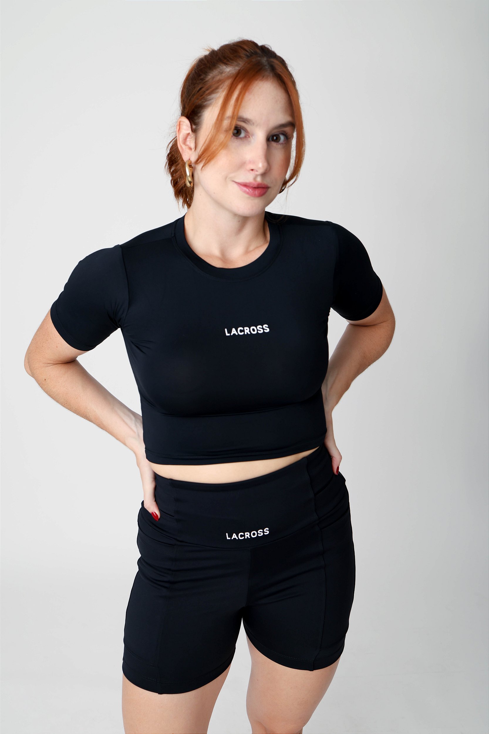 Prático e confortável, este cropped manga curta Race preto da LACROSS é ideal para suas atividades fitness, oferecendo ajuste perfeito e liberdade de movimento.